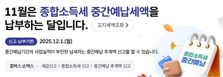 - 종합소득세 11월: 중간예납 납부기한 12월 1일