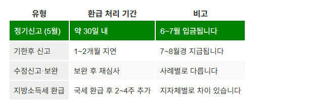 다만 신고 시기, 세무서 업무량, 보완 요청 여부에 따라 환급 일정이 달라질 수 있습니다.